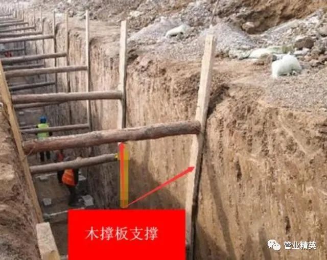 (3)在軟土或其他不穩(wěn)定土層中采用橫排撐板支撐時(shí),開始支撐的溝槽開挖深度不得超過1.0m;開挖與支撐交替進(jìn)行,每次交替的深度宜為0.4-0.8m。